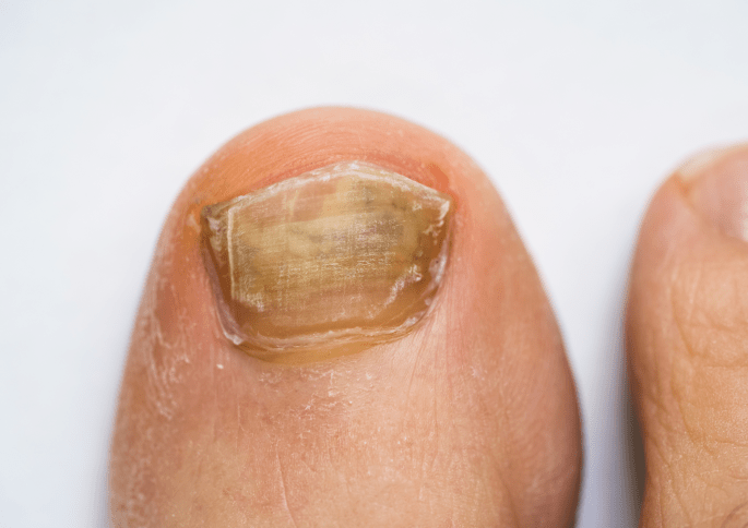 Fungal nails can be very difficult to eradicate. When infected the nail is yellow, white or black with thickened deformation causing separation from the nail.